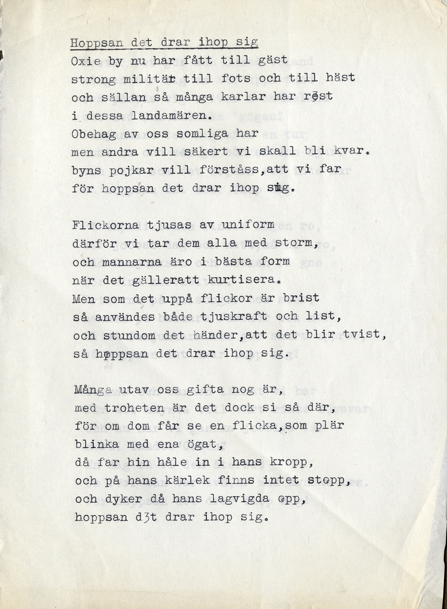 En visa om kronobergarnas äventyr i Oxie utanför Malmö.