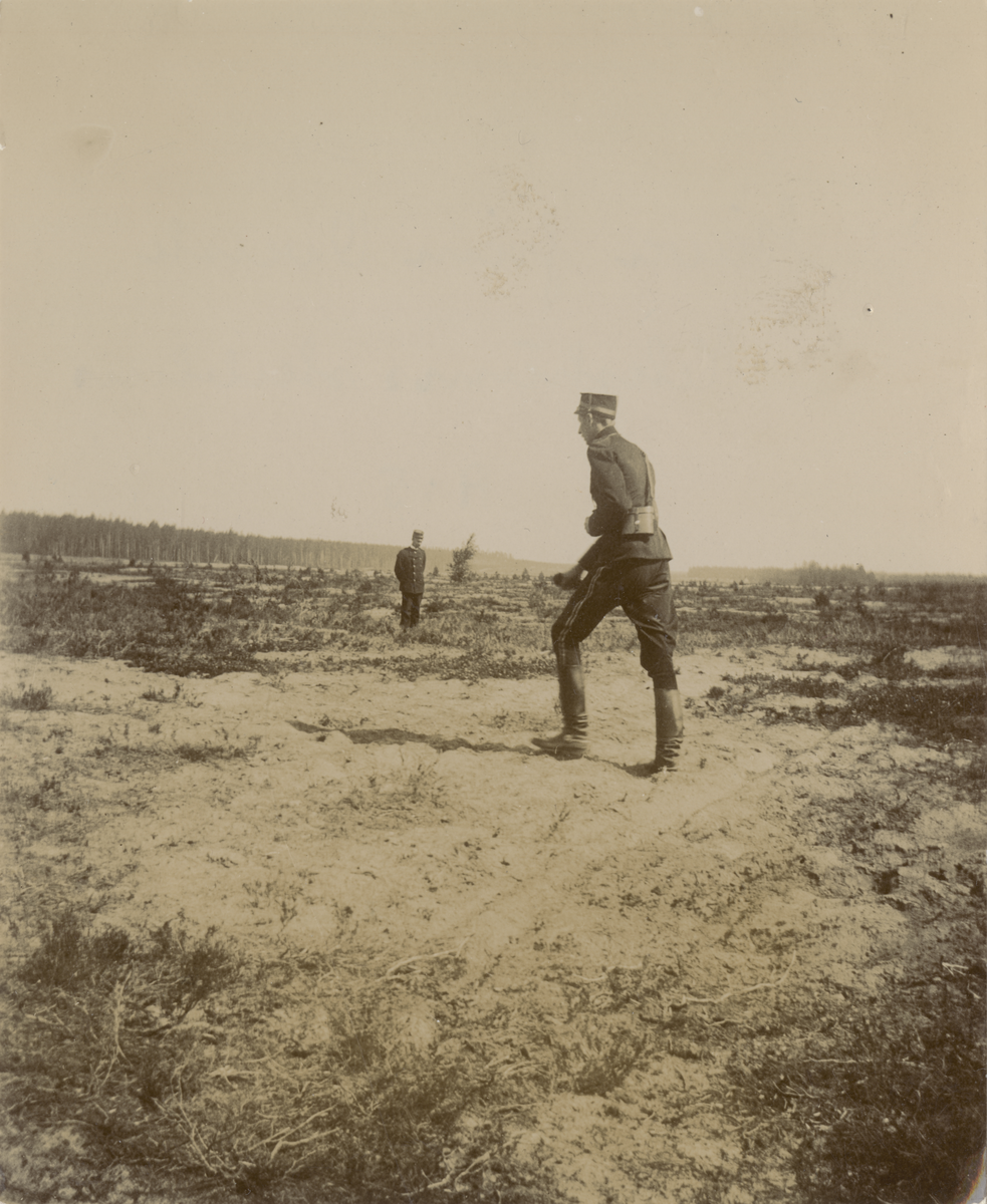 Kapten Benzel från Upplands artilleriregemente A 5 marscherar på fält, ca 1900.