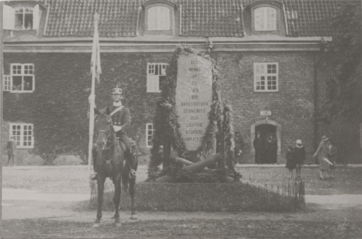 Titel: Hedersvakt till häst vid minnessten över stupade 1813 från Wendes artilleriregemente.