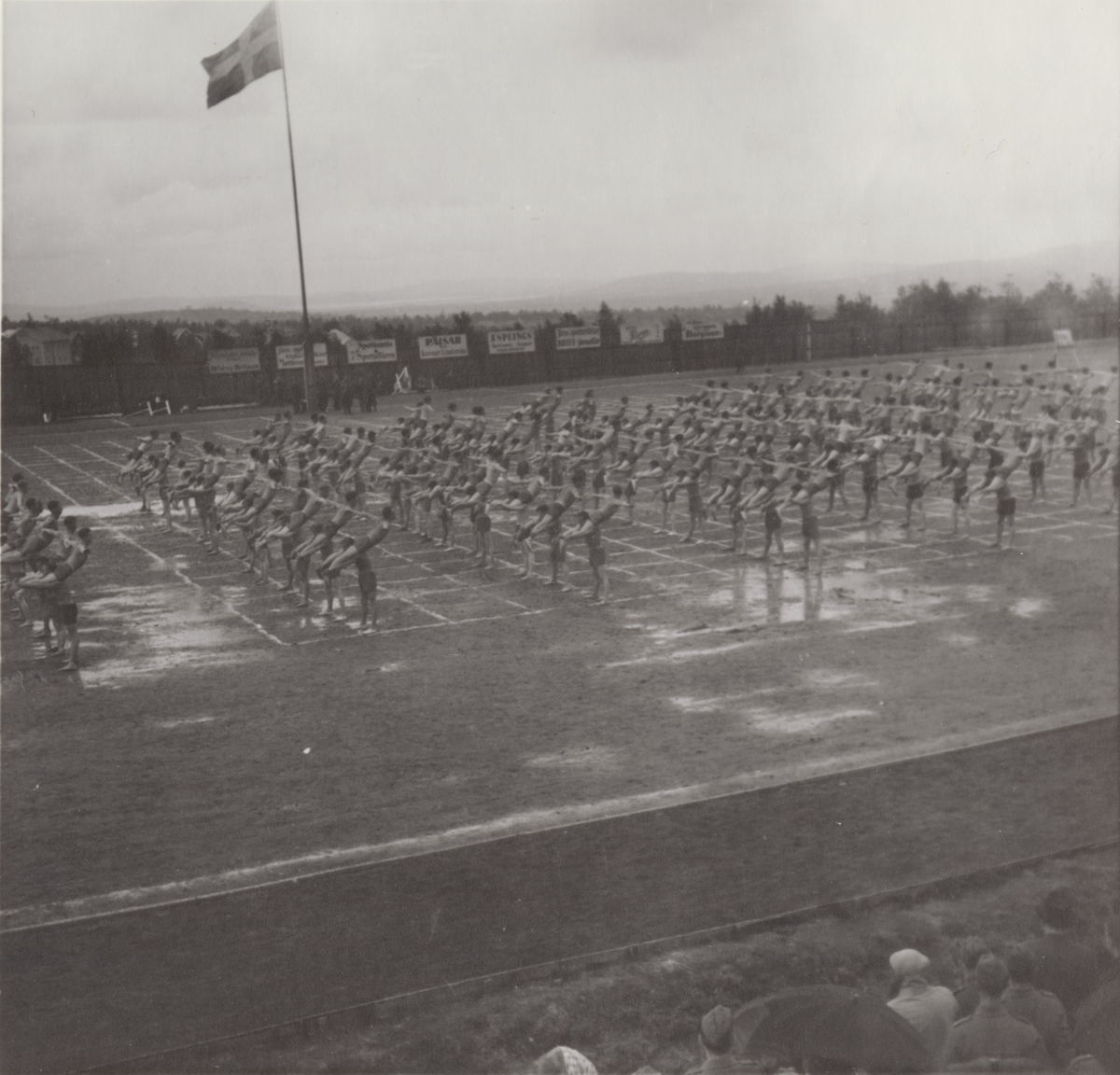 Titel: Soldater vid en gymnastikuppvisning. Foto ur anonym serie från beredskapen i Norrland.
