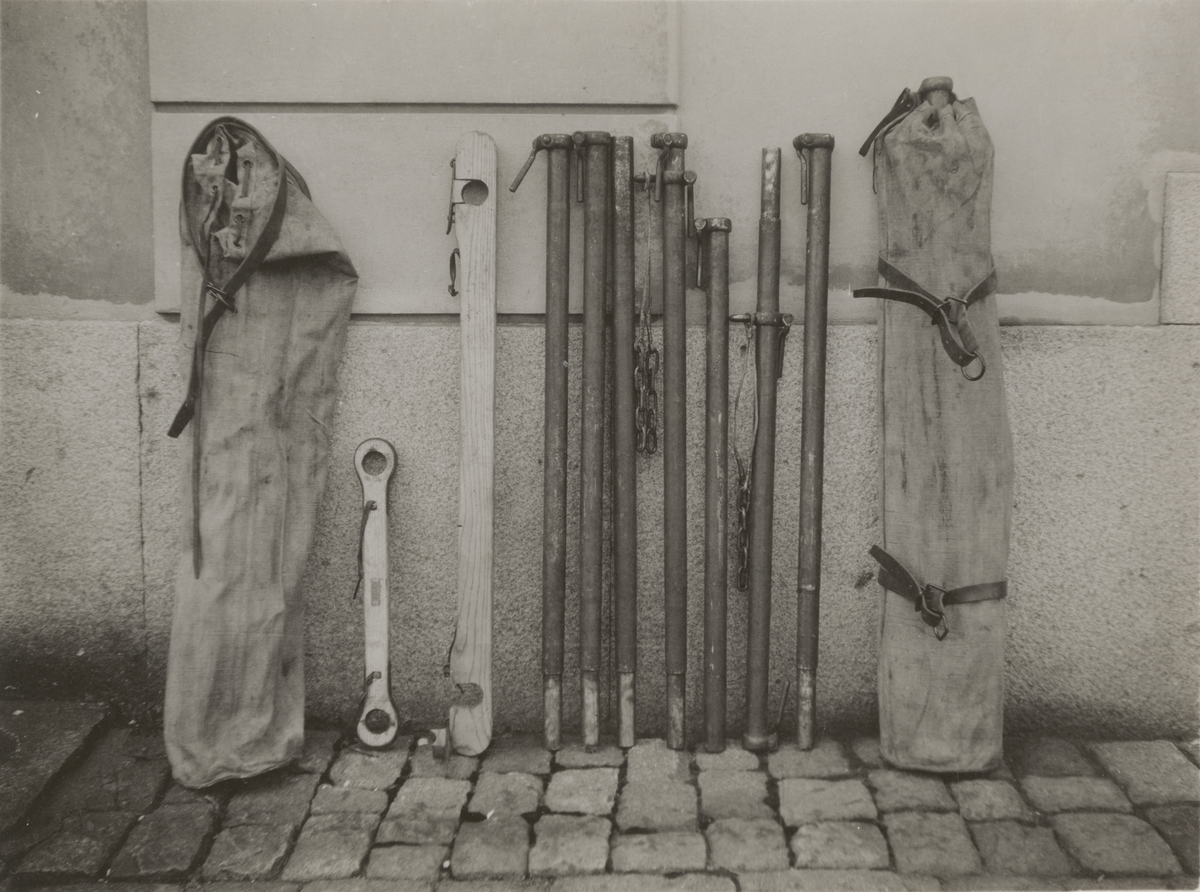 Titel: Klövjehästburen materiel vid försök.