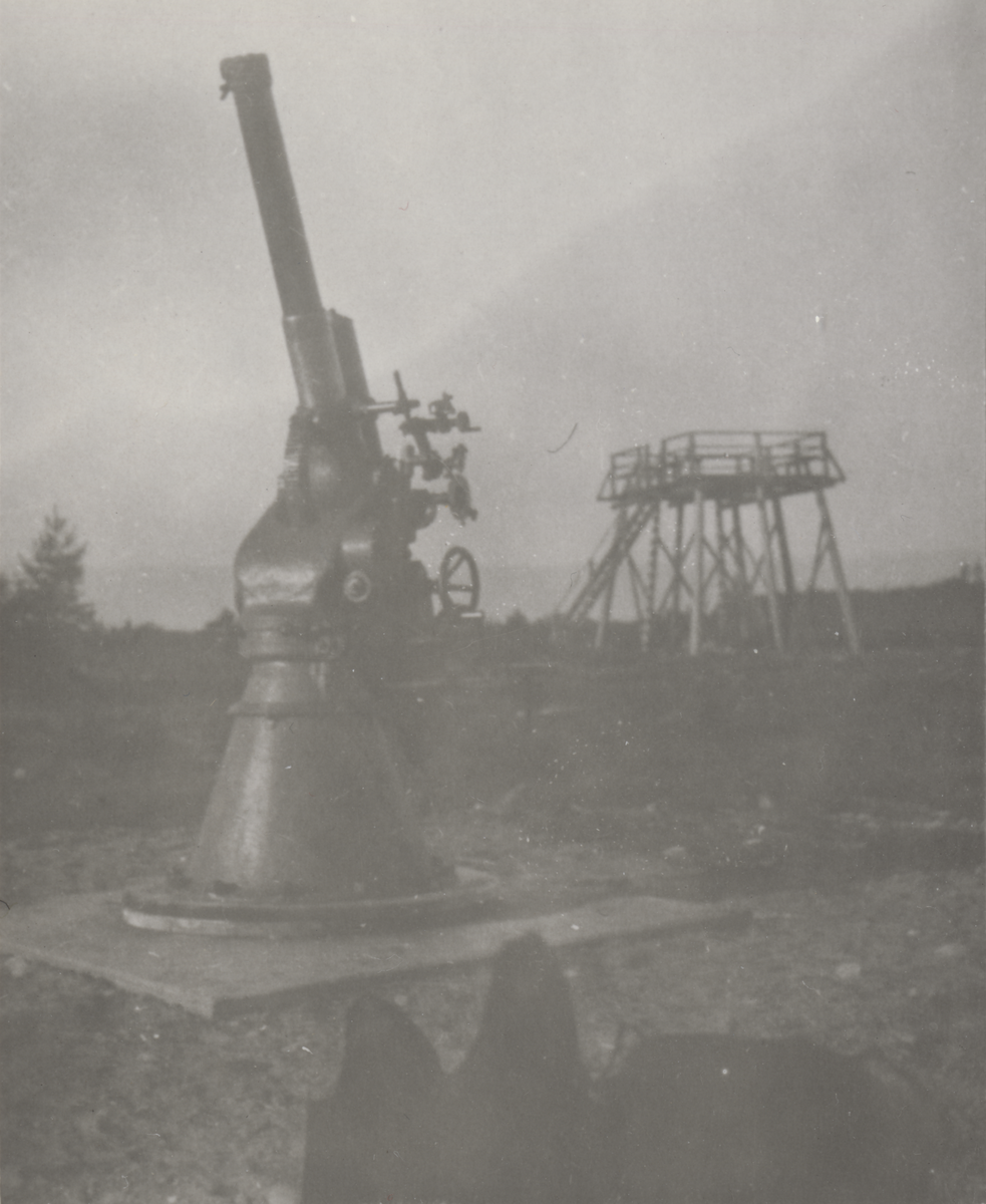 7,5 cm kanon m/1918 med eldröret riktat uppåt på Karlsborgs skjutfält.
