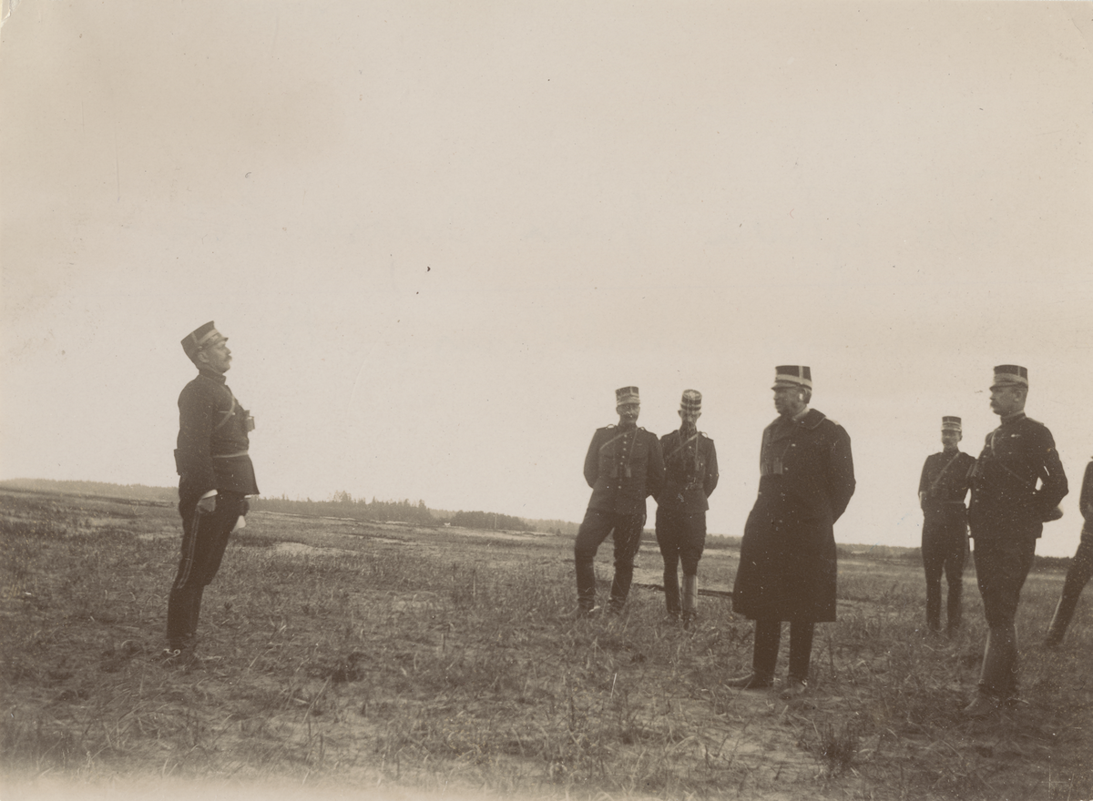 Artilleriofficerare från Upplands artilleriregemente A 5 på öppet fält, ca 1900.