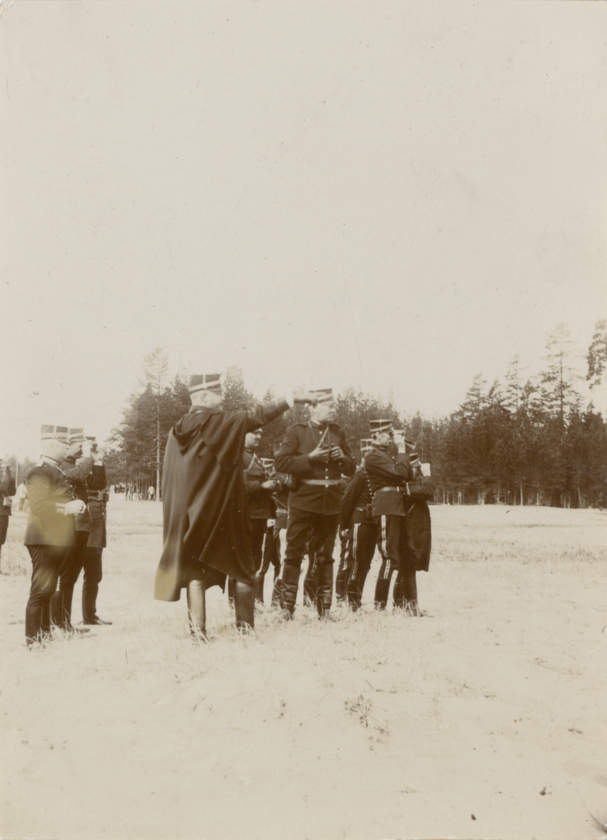 Artilleriofficerare från Upplands artilleriregemente A 5 på fält, ca 1900.