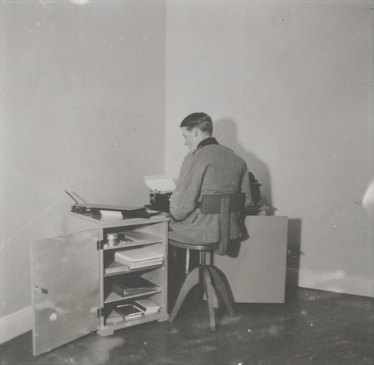 Krigshögskolan KHS, en man vid skrivmaskin.