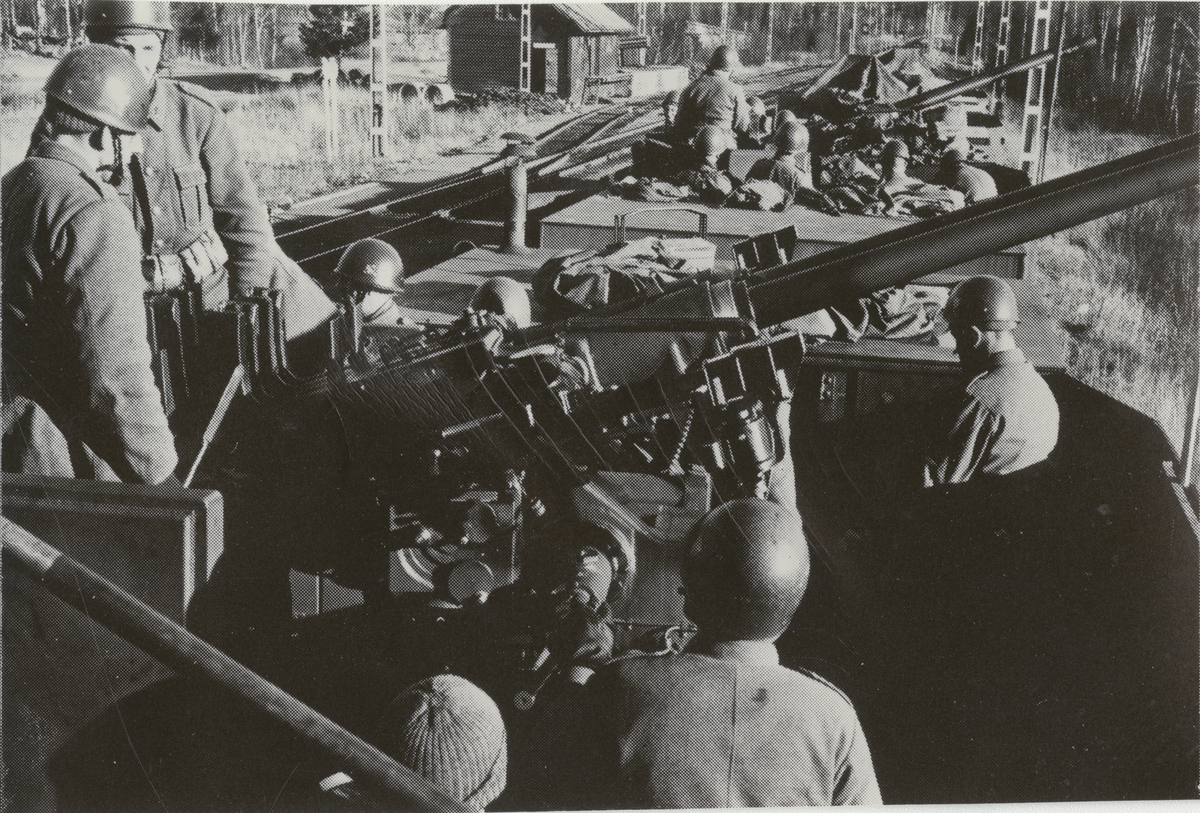 Titel: Tåg med två 40 mm luftvärnsatomatkanon m/1940 och betjäning.