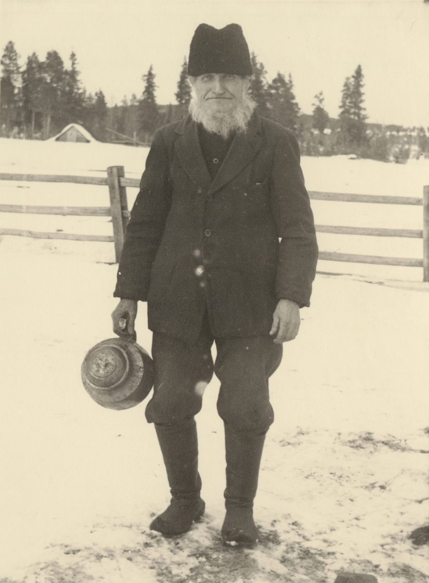 Titel: 88-årige Outinen poserar. Foto ur anonym serie från beredskapen i Norrland.