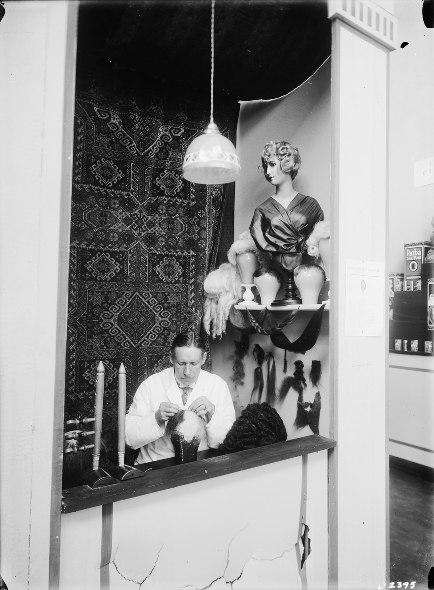 Hantverkets propagandautställning: Perukmakare. Anordnare Stockholms stads verkstadsskolor.