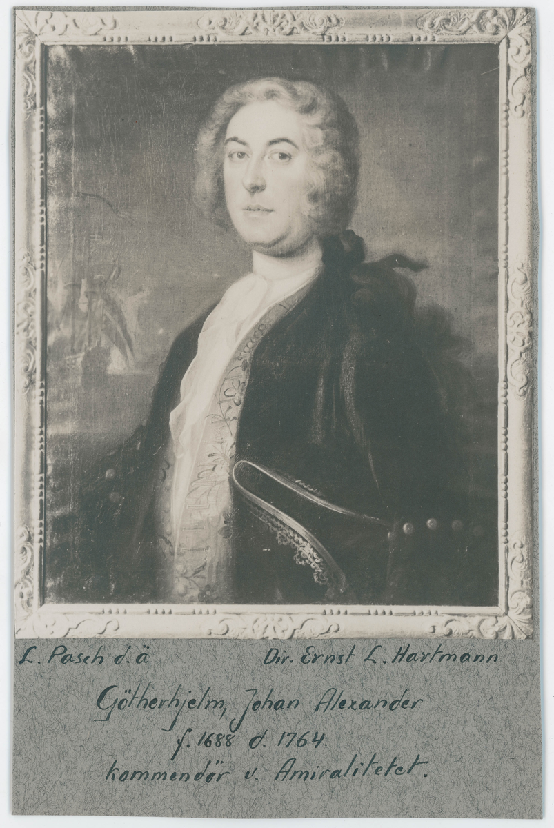 Porträtt på Johan Alexander Götherhjelm. Född år 1688 och död år 1764.