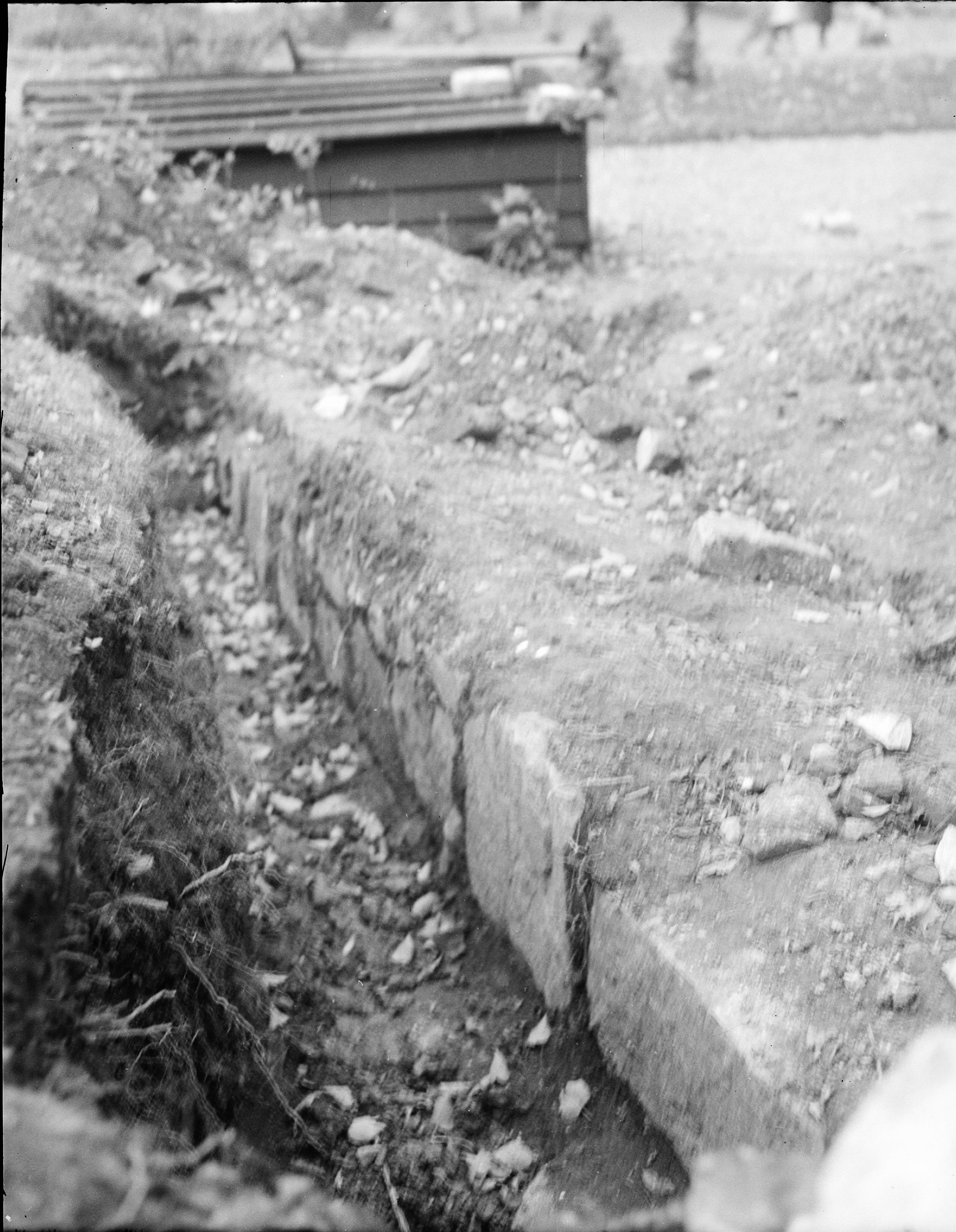 Mur utgående från korsgångens västra länga.