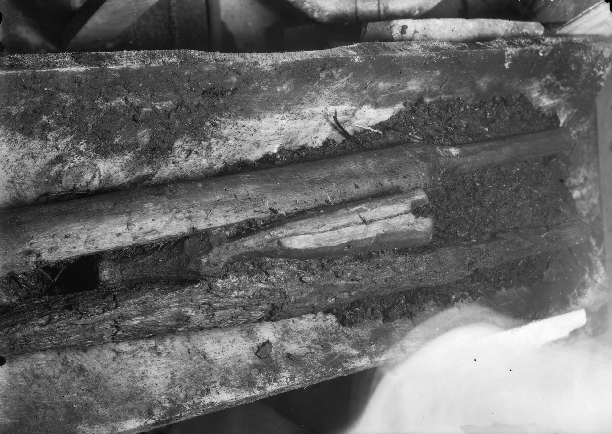 Träkil i stock sedd uppifrån-framifrån.