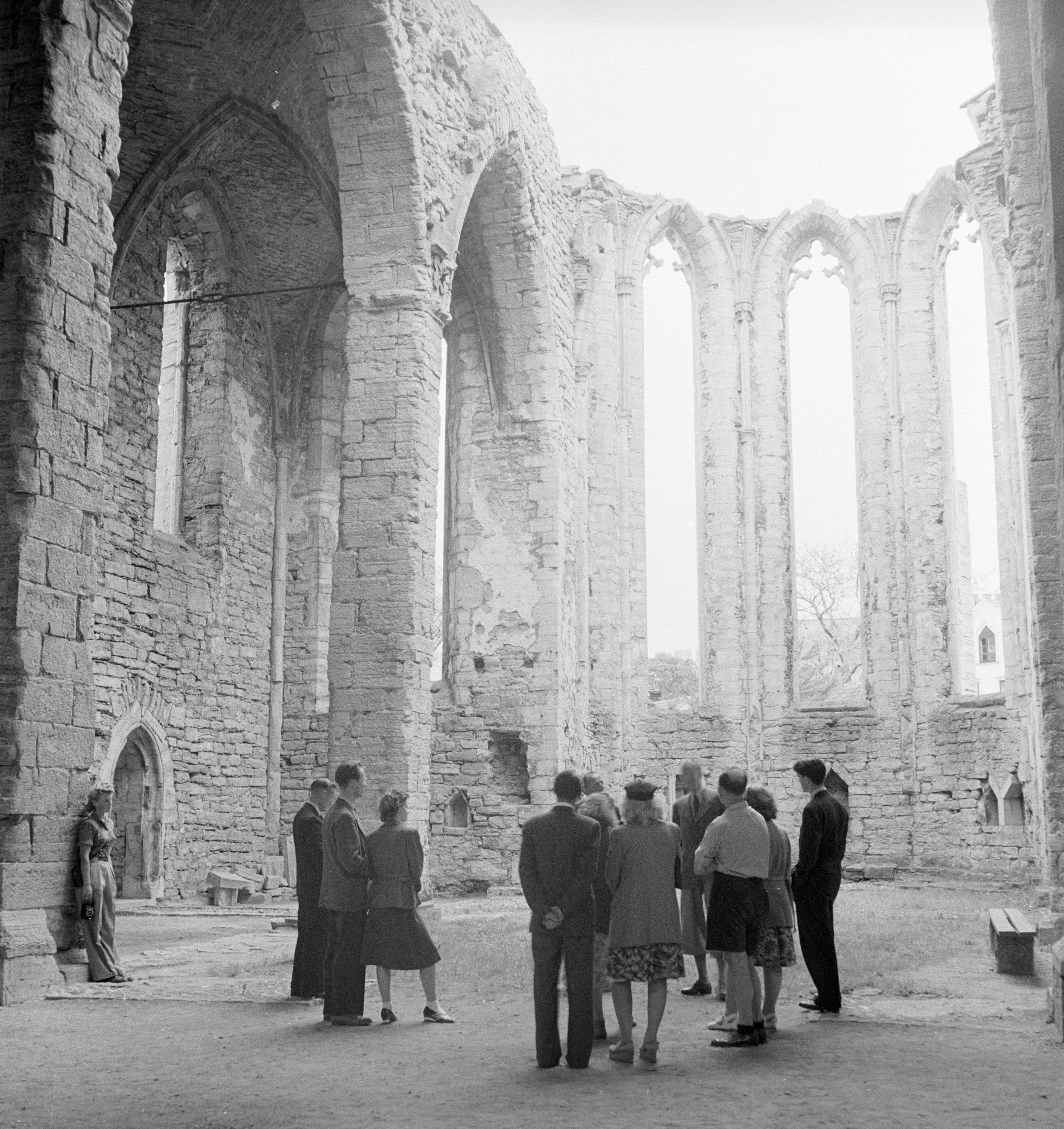 Interiör mot öster med besökare. Bilden är troligen från 1940-talets första hälft.