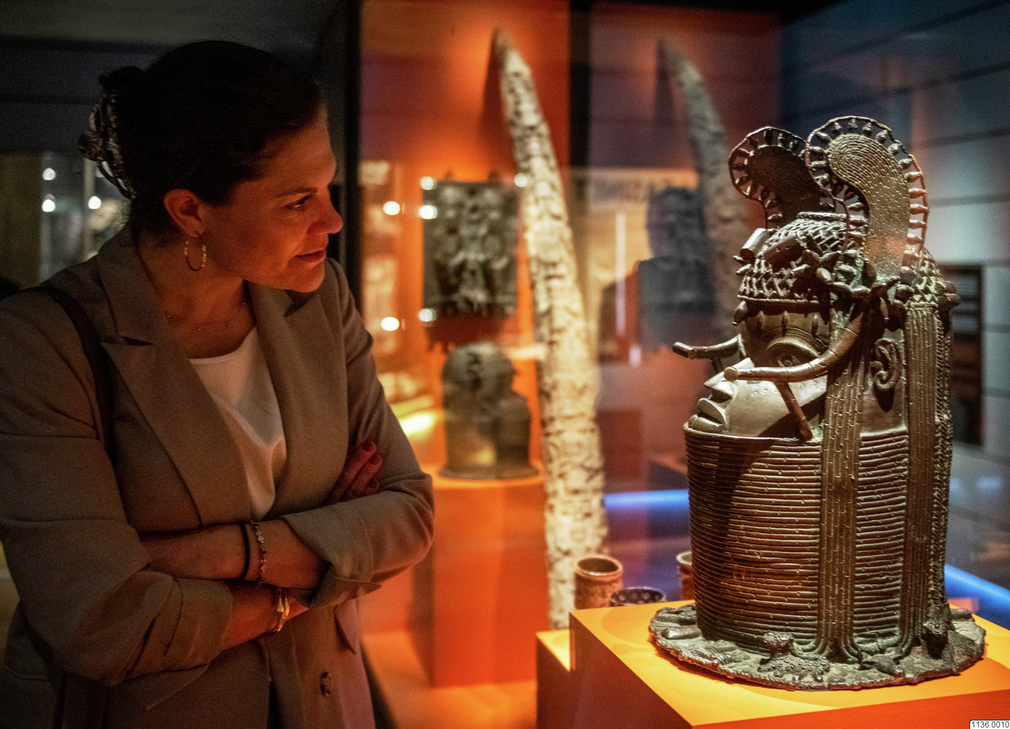 Kronprinsessan Viktoria besöker Etnografiska museet och Beninutställningen. Besöket gjordes inför repatriering (återlämnande/återförande) av beninföremål, bland annat bronser, till Nigeria.