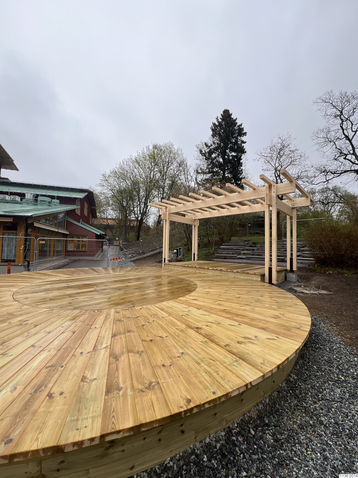 Pergolataket 2. Byggarbete pågår utanför Etnografiska museet inför anläggandet bland annat av en parkscen.