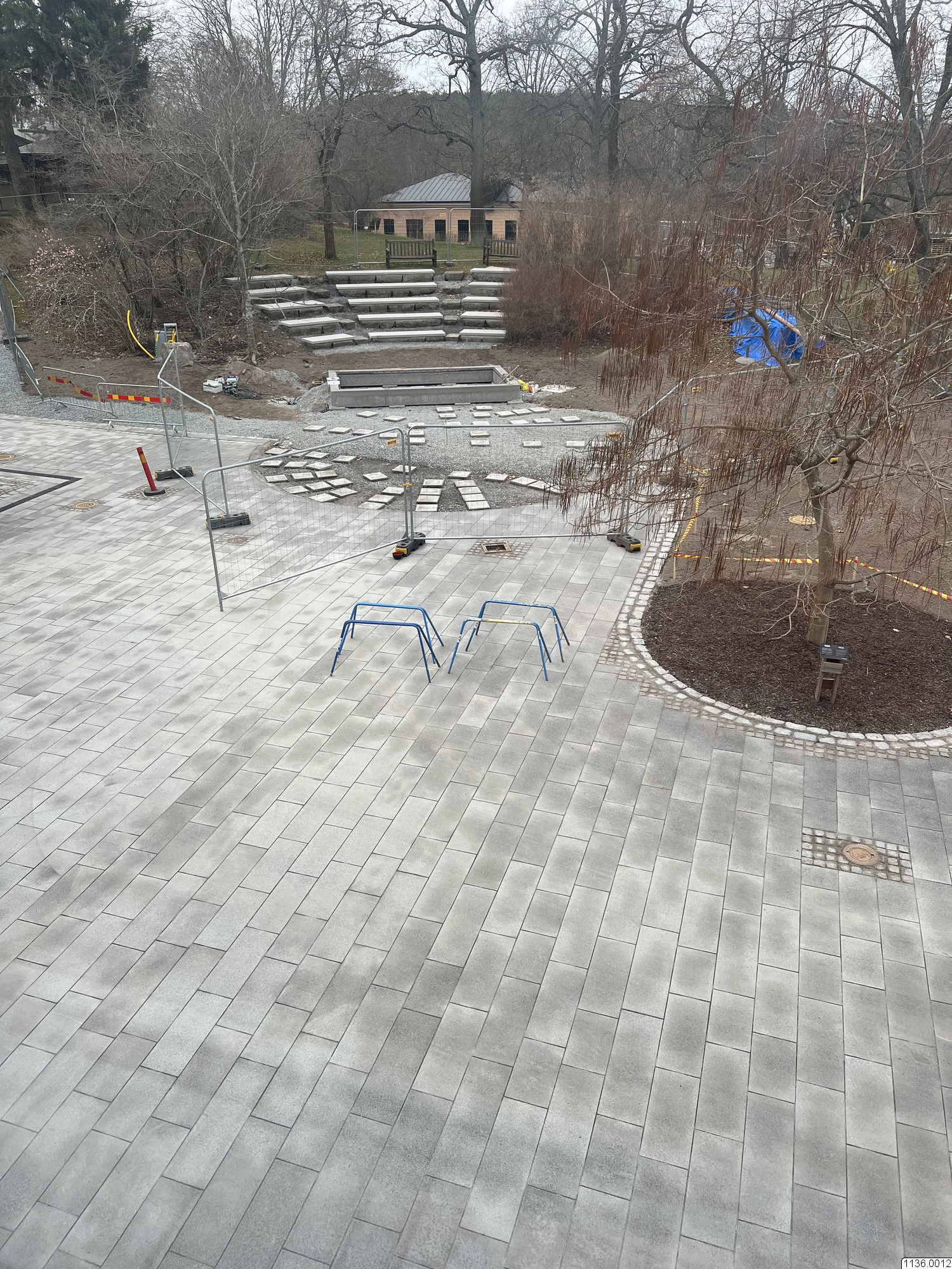 Byggarbete pågår utanför Etnografiska museet inför anläggandet bland annat av en parkscen.
