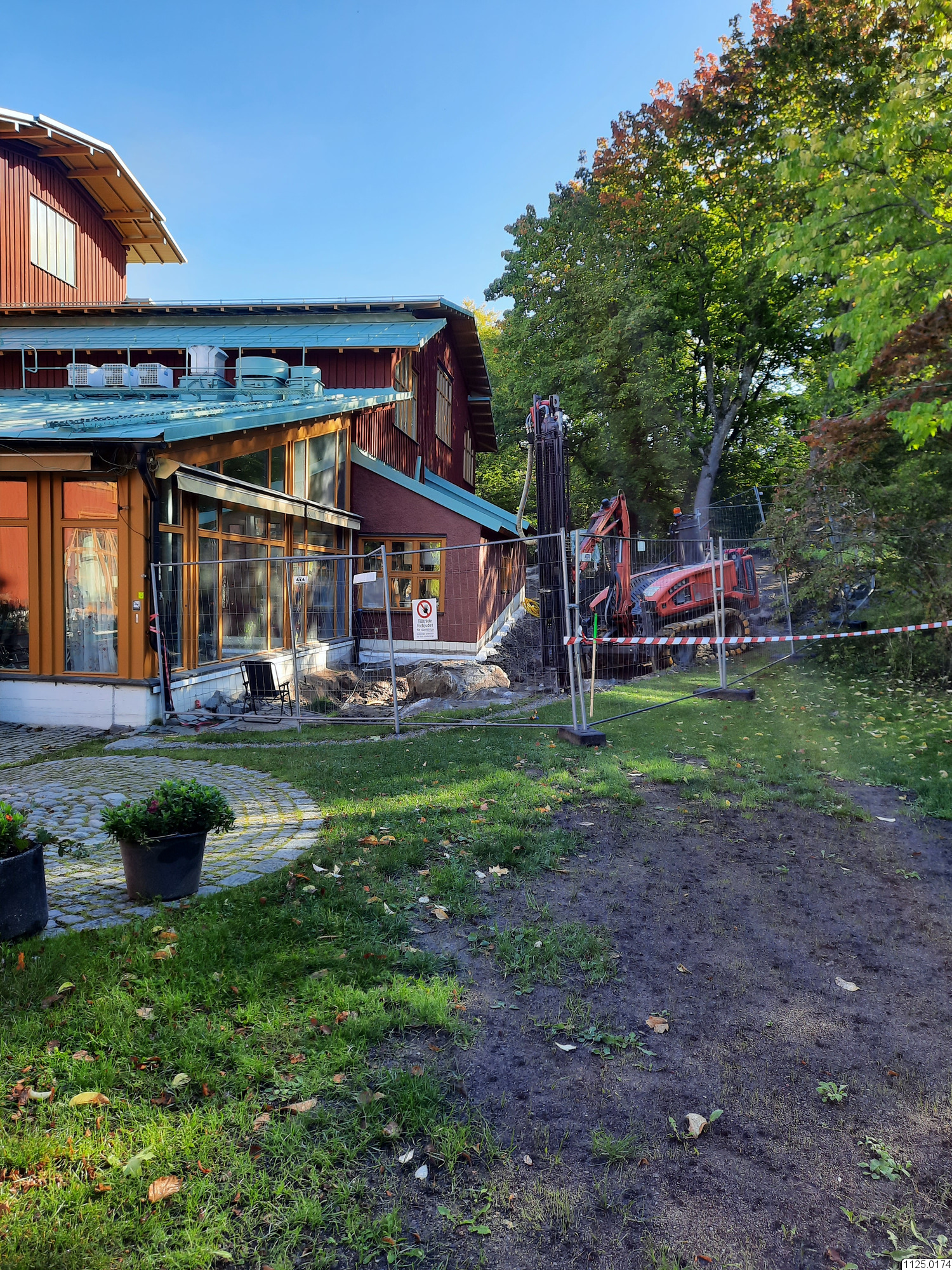 Dränering byggnaden EM. Byggarbete pågår utanför Etnografiska museet inför anläggandet bland annat av en parkscen.