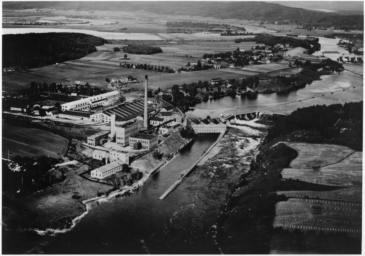 Flygfoto över Kvarnsvedens pappersbruk, 1930-tal.