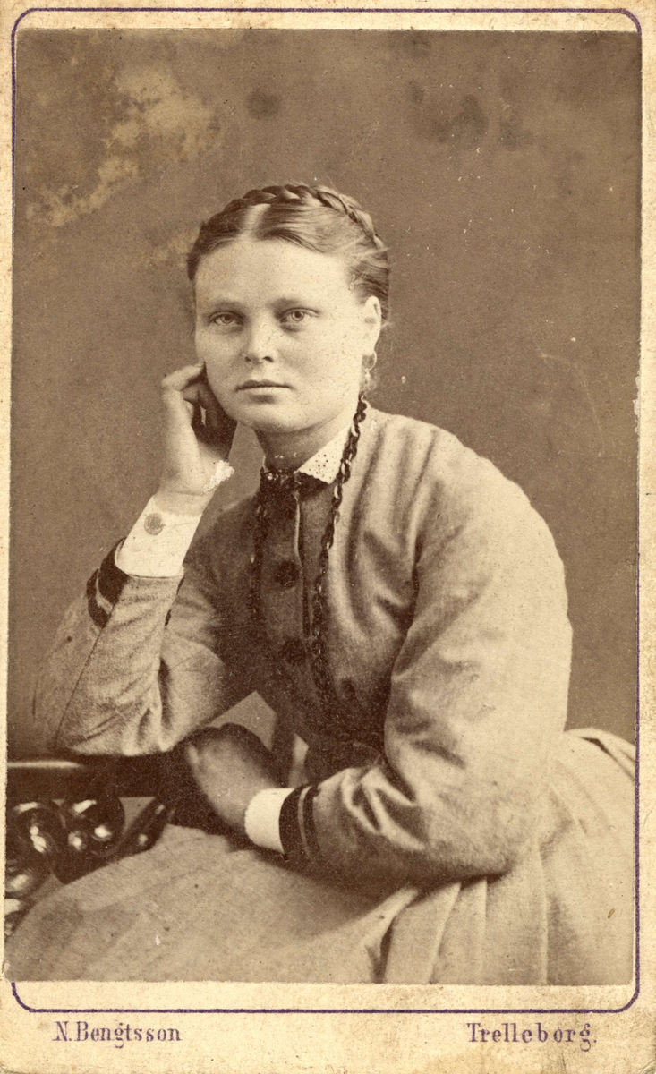 Ateljéporträtt i halvfigur av en sittande kvinna ca 1870-80.