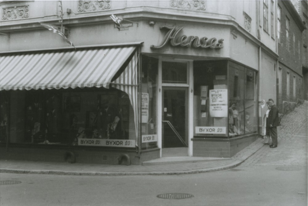 Exteriört fotografi av Henses herrekipering på Södra Storgatan.