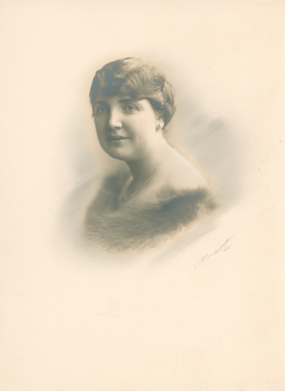 Fotografier föreställer konsulinnan Gerda Charlotta Persson Henning (född Lindqvist/Lindquist) klädd i vad som troligen är en djurpäls och runt halsen har hon ett halsbans samt i det örat som syns på bilden hänger det ett örhänge.