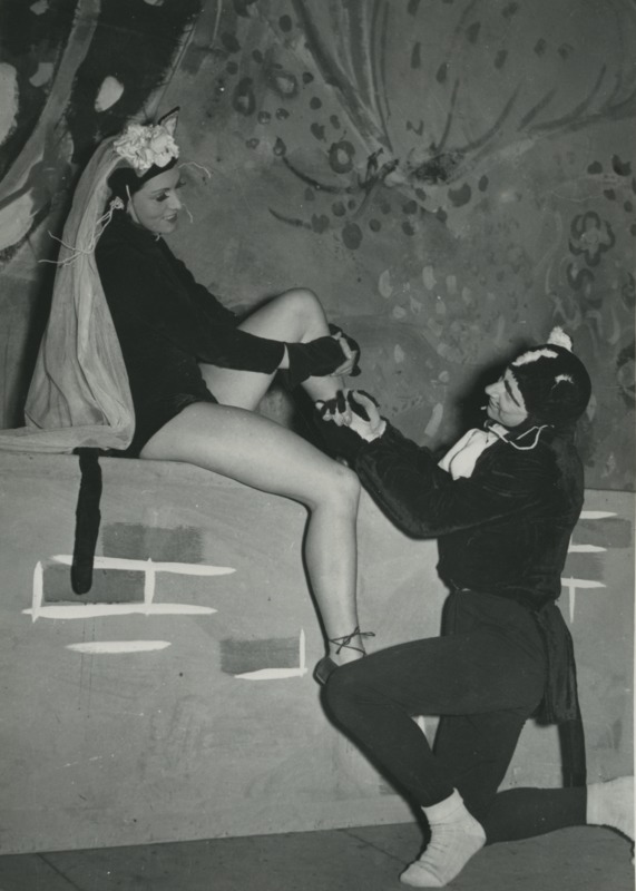 Scen mellan en man och en kvinna från en föreställning av revyn Vårluft.