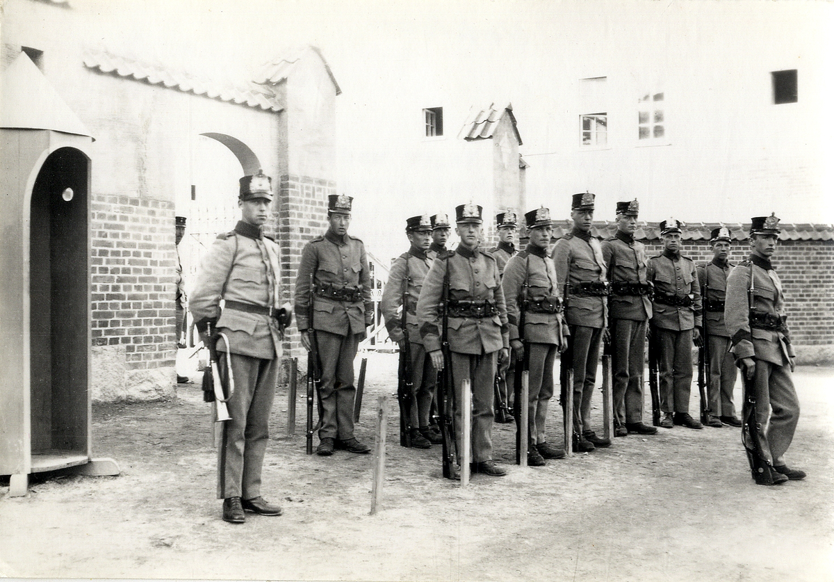 Titel: Repetitionsövningarna vid I11 i Växjö, hösten 1921. Vakten utanför vakthuset.