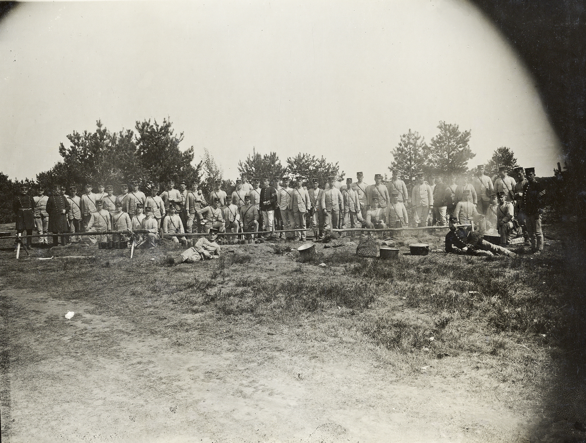 Längst t. v.: kapten Ludvig Silfversparre. Tredje fr. v.: fanjunkare Ekbladh. I mitten distinktionskorpral Isberg. Längst t. h.: distinktionskorpral Rudberg, mellan dem distinktionskorpral Thornell.