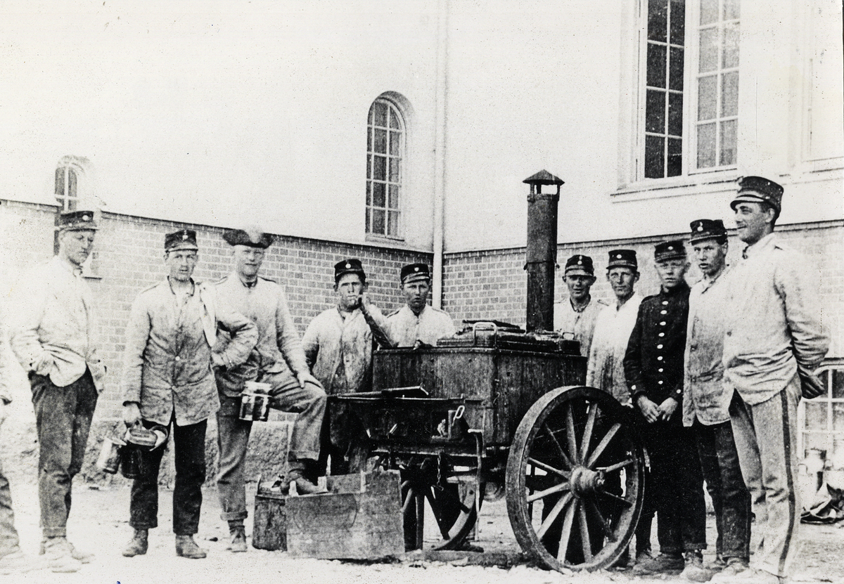 5:e kompaniet ("koket") under tillfällig förläggning vid Västra skolan (Bäckaslövskolan) i Växjö, 1918.