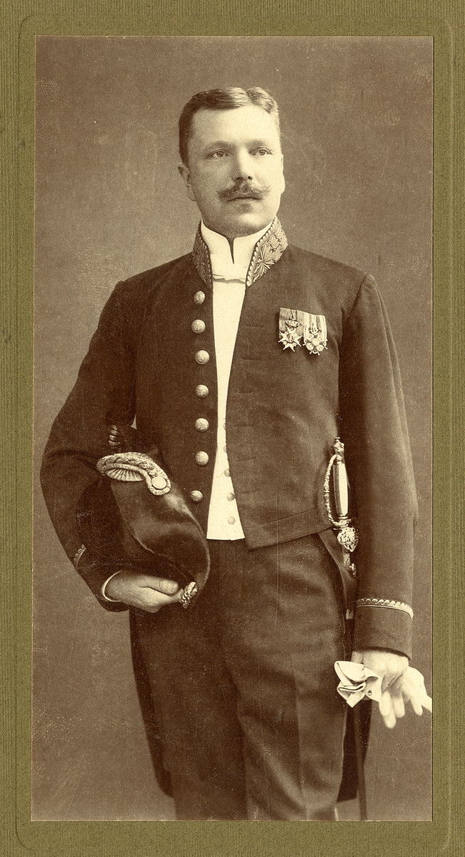 Musikdirektör Erik Högberg i paraduniform med sabel och utmärkelser.