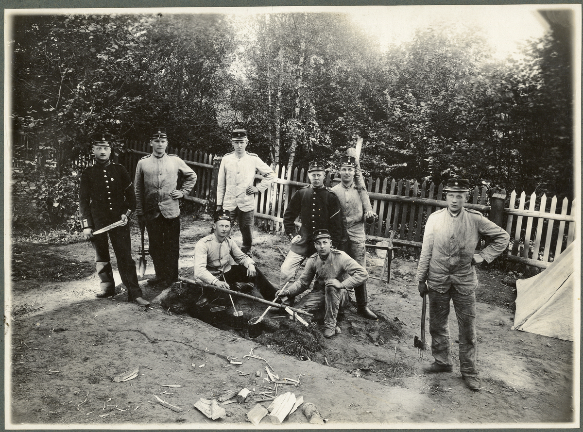 Kokövning nedanför arresten, under övervakning av två okända distinktionskorpraler.