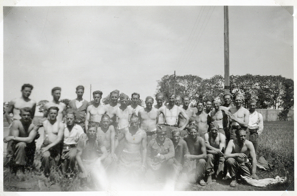 En pluton har rast och vila (?) på en solig äng, någonstans i Skåne.
