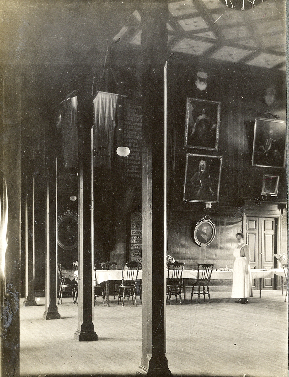 Matsalen med Amanda (anställd i köket). Man ser bl a pelarna som bar upp musikläktaren.