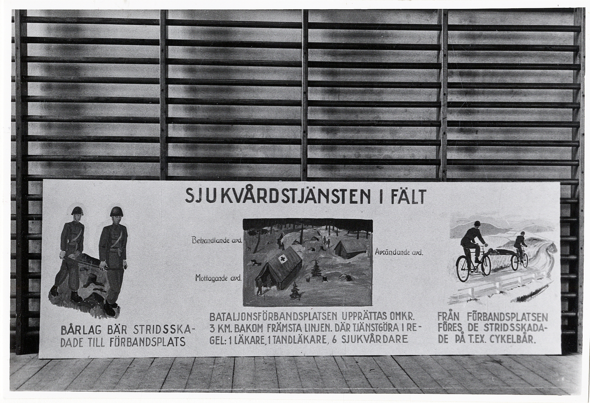 Utställning i gymnastiksalen, I11. Information om sjukvårdstjänsten i fält, med mottagande avdelning, behandlande avdelning