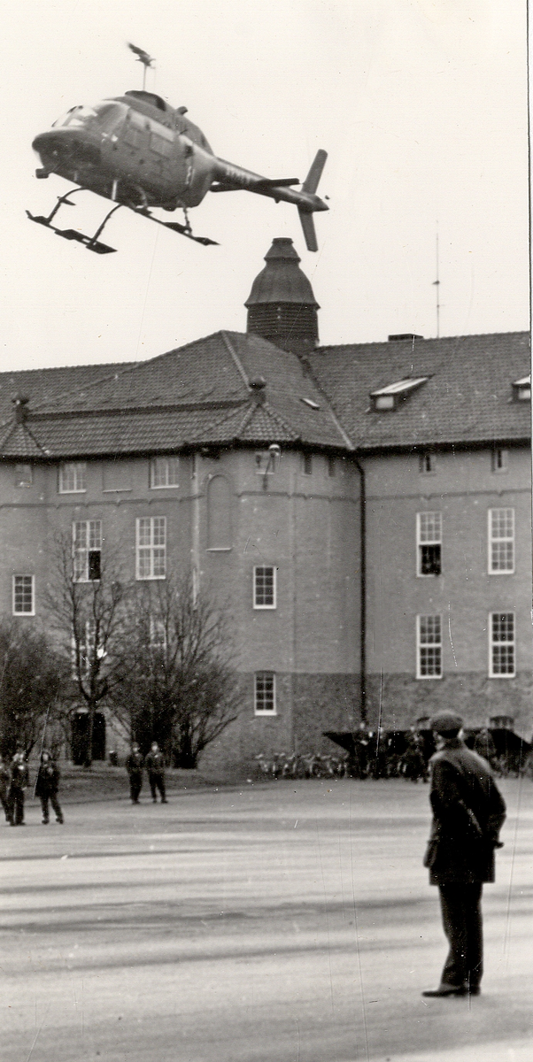 Regementschefen överste Per Hugo Winberg avvaktar landningen.