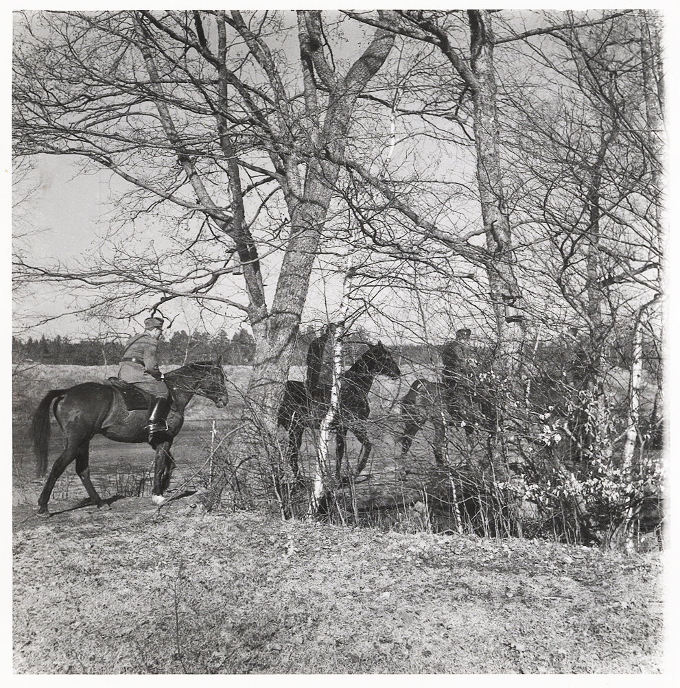 Sista motionsritten våren 1959, innan regementets hästar avvecklades. Deltagare vid ritten till bl a Kronobergs slottsruin: överstelöjtnant Anderberg. kaptenerna Råsbäck, Remberg, Håkansson, löjtnant Carlsson, fänrikarna Klinthof och Carlsson.