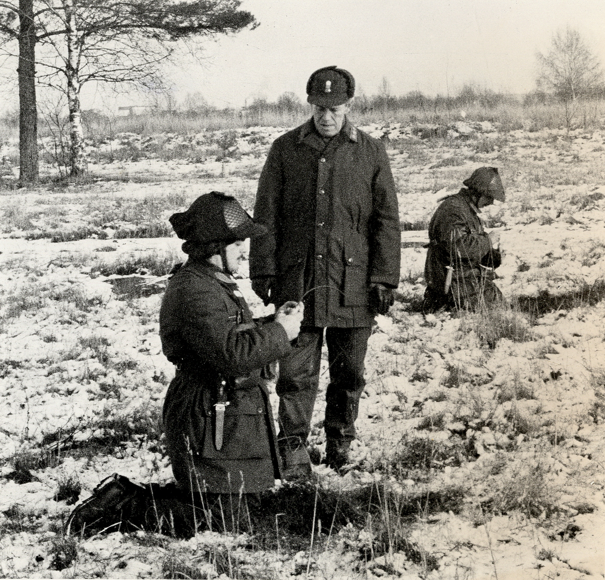 MB generallöjtnant Karl-Eric Holm inspekterar tändandet av en krutstubin.