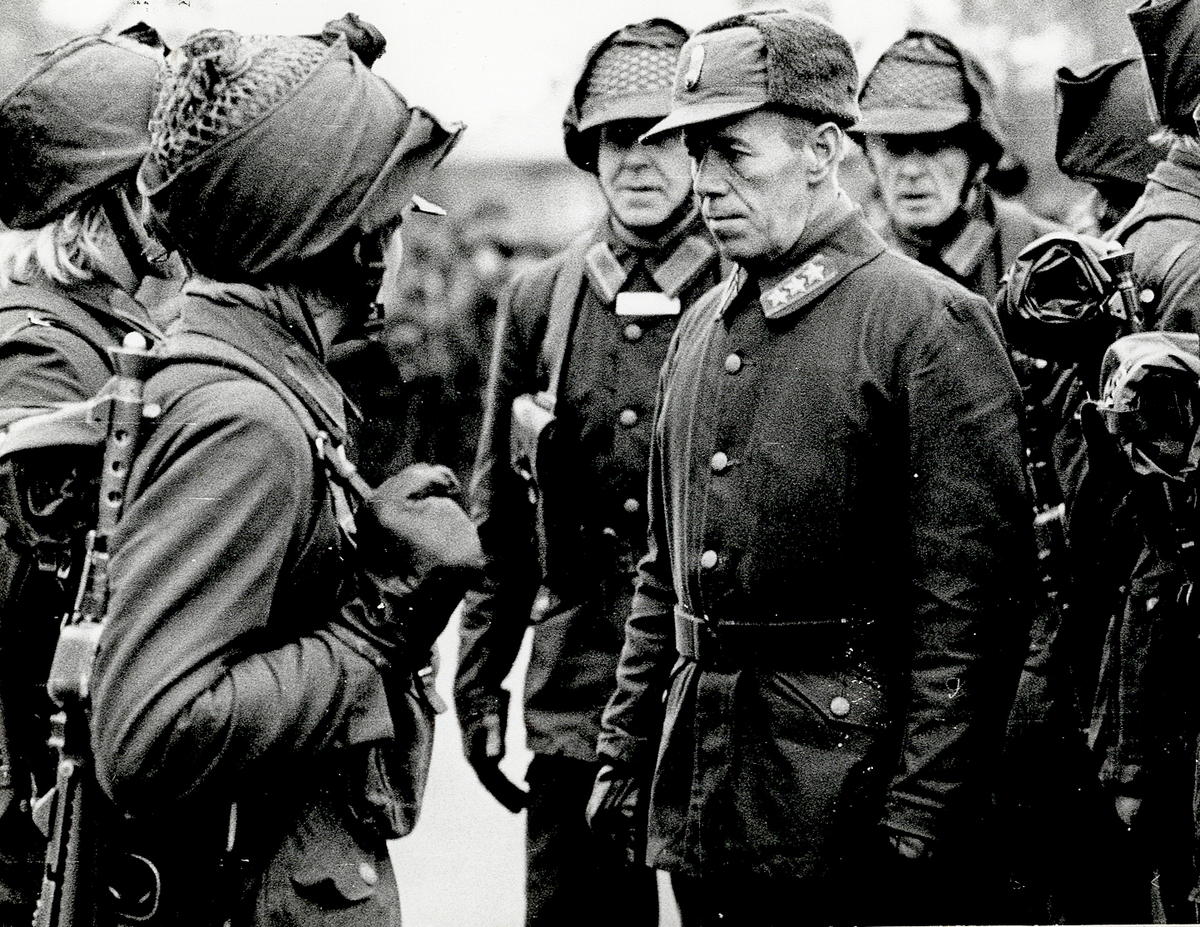 Överste1 Bertil Malgerud, MB generallöjtnant Karl Eric Holm och överste Per Hugo Winberg synar soldaterna.