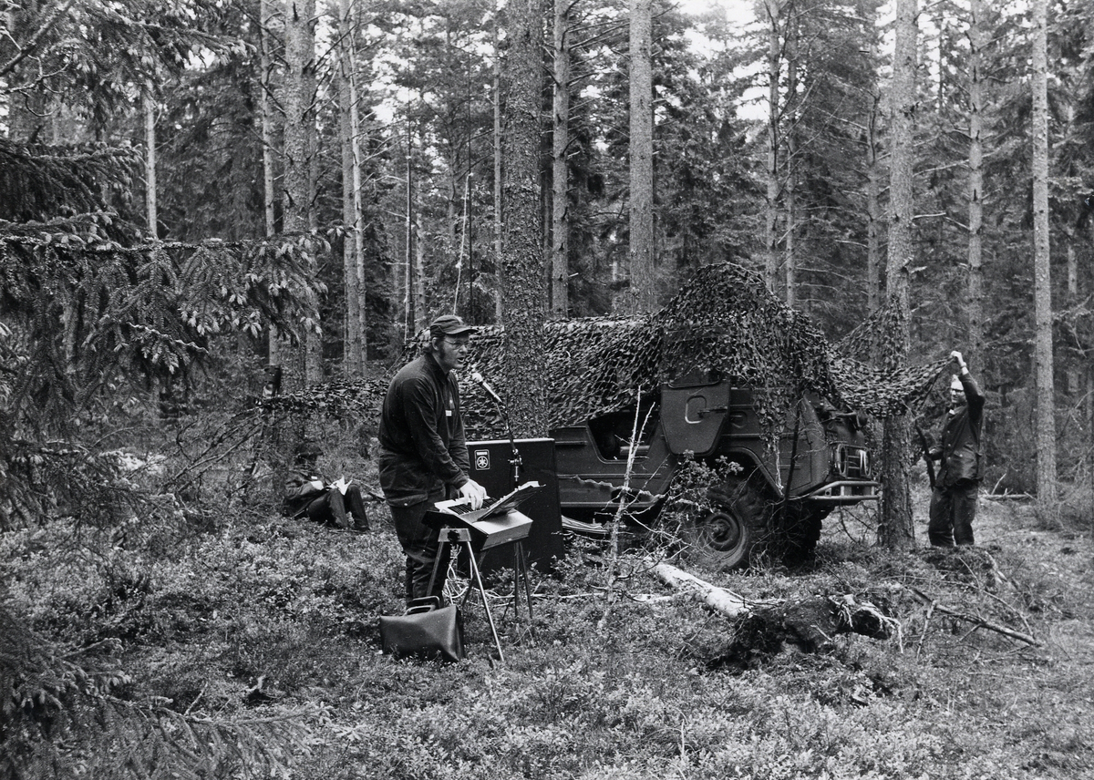 Bataljonspastor Westberg i färd med att rigga ett ställe för fältandakt.