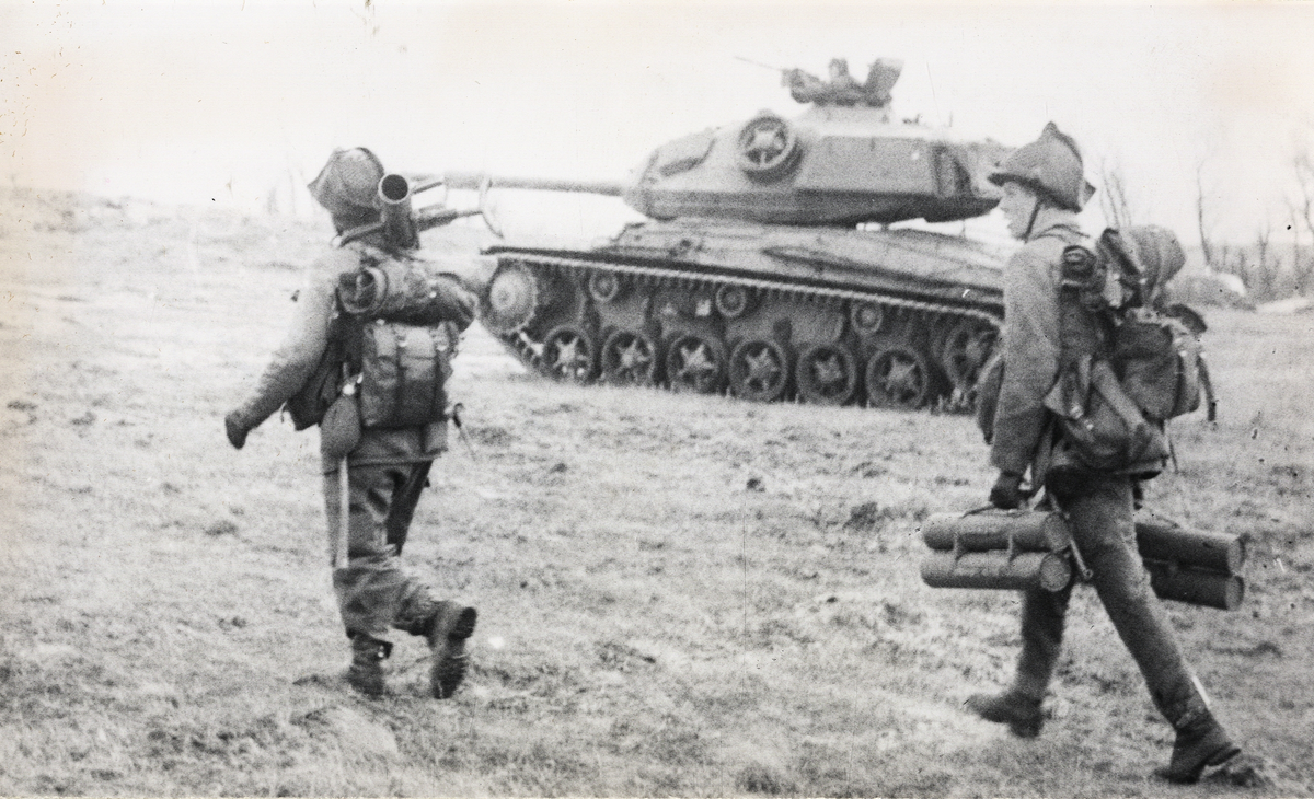 Grggrupp ur I11 under framryckning med understöd av pansar från P2.