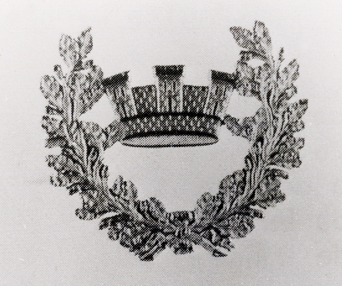 Mössmärke (krenelerad krona med eklövskrans) för stadsfiskal (Växjö).
