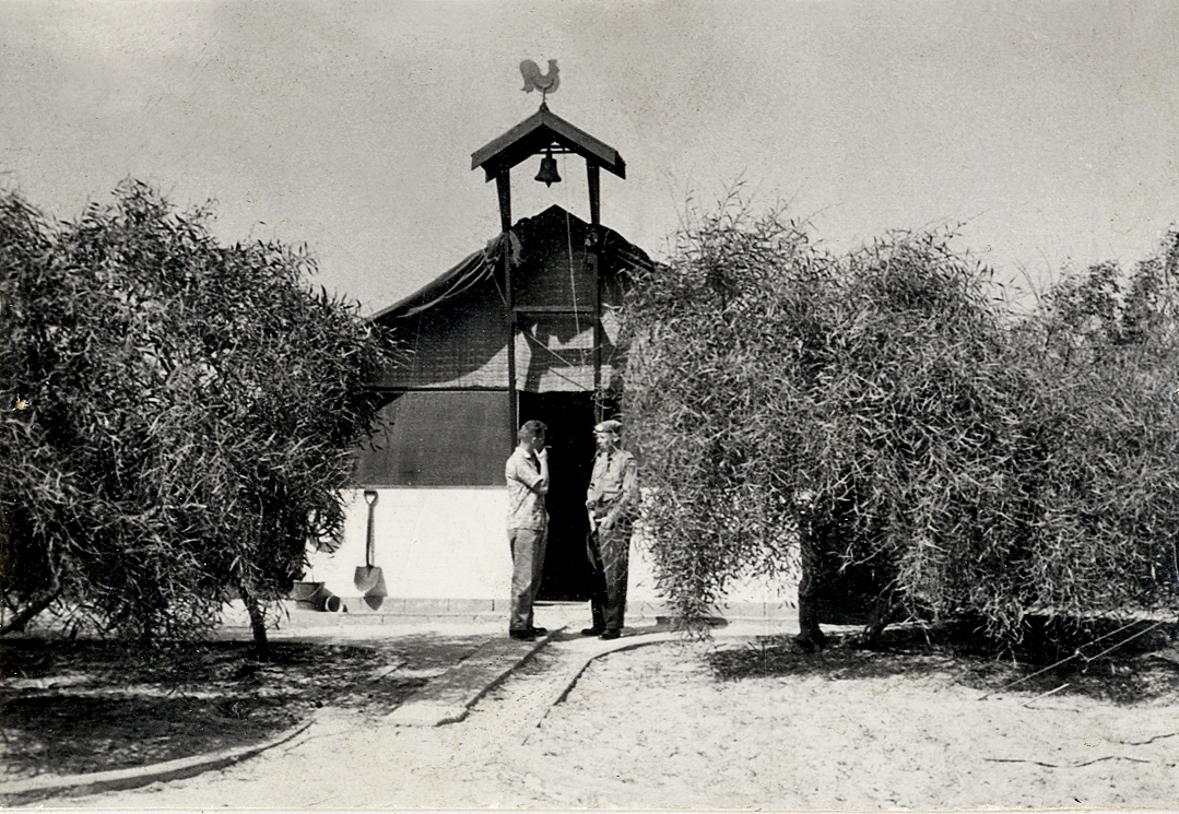 Major Kurt-Erik Amundson, I11, samtalar med en man utanför en kyrka.