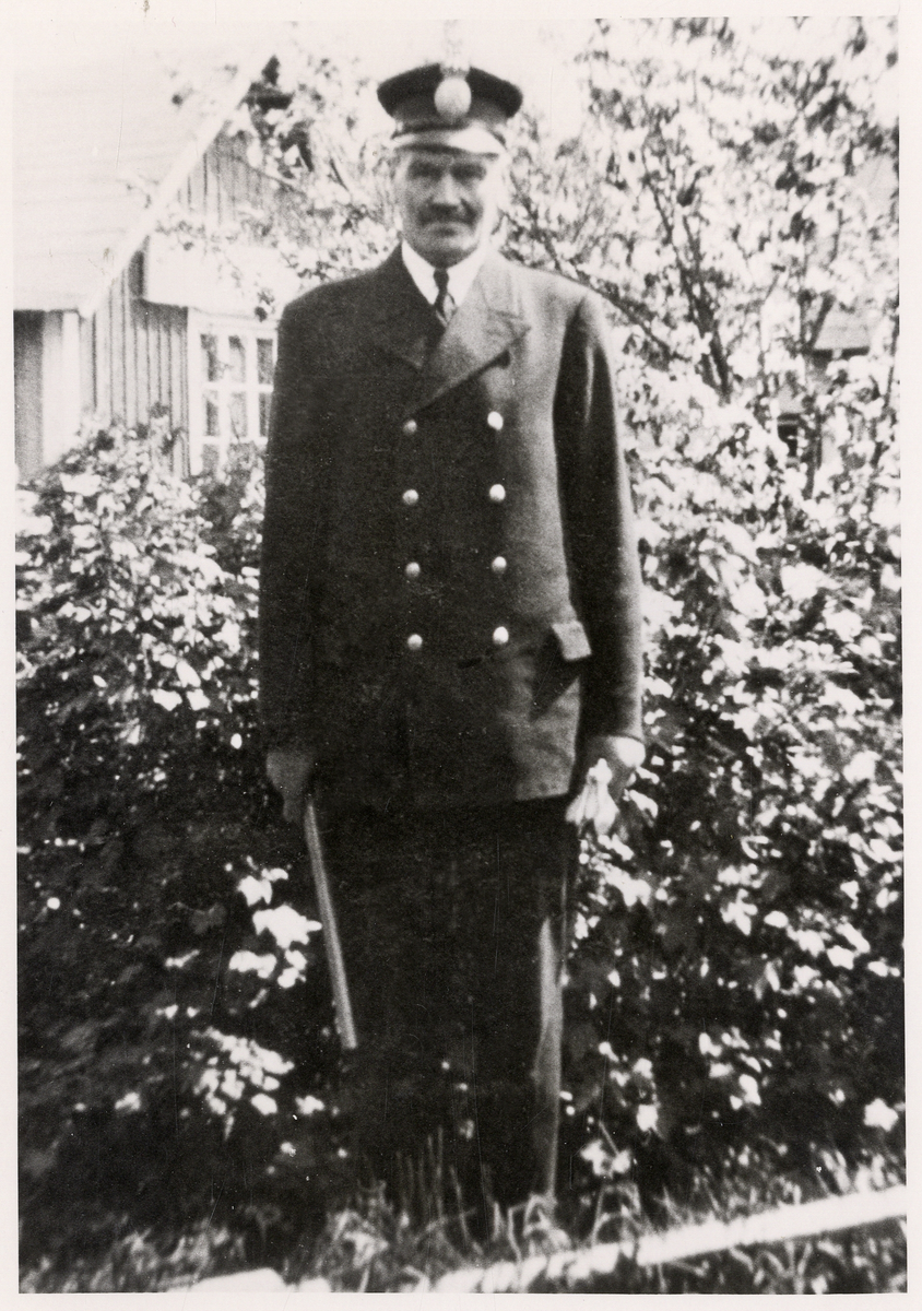 Fjärdingsman Robert Svensson i en trädgård. Åseda, ca 1932.