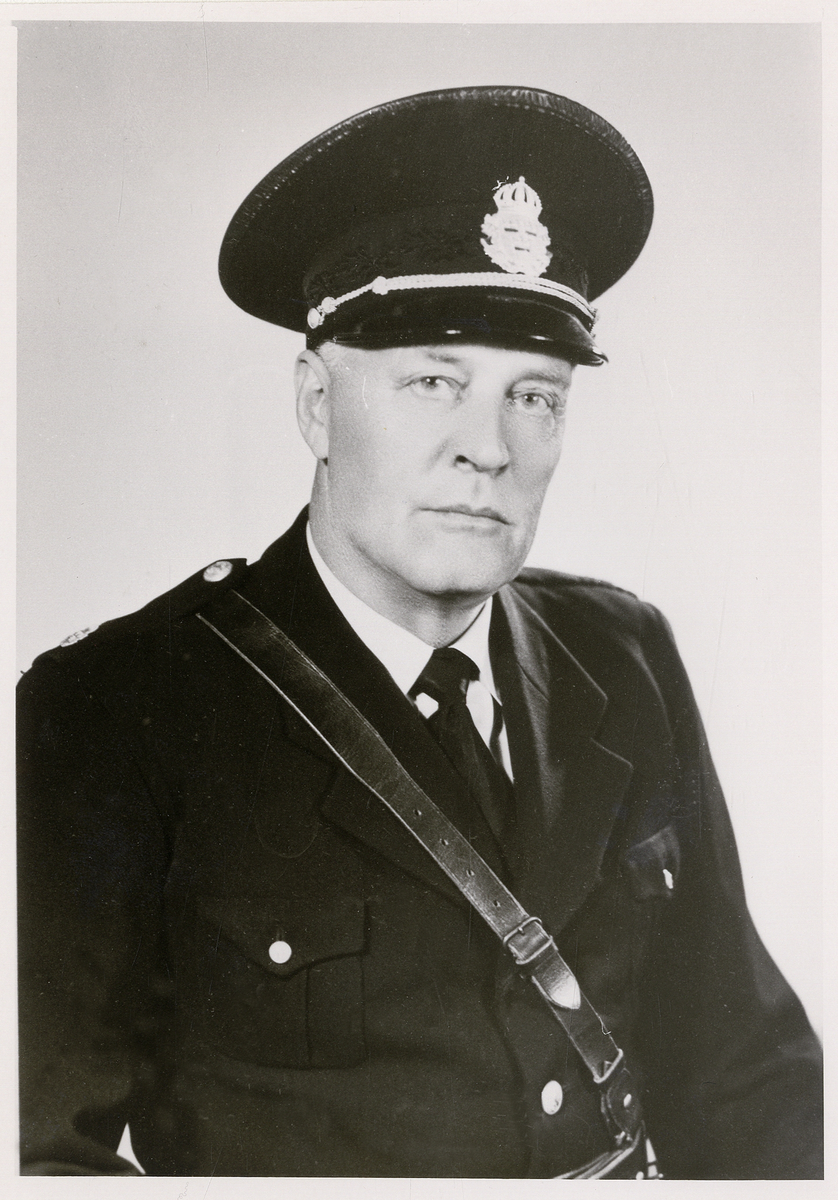 Polisman Gunnar Johansson, Älghult, i full uniform, ca 1955-60.