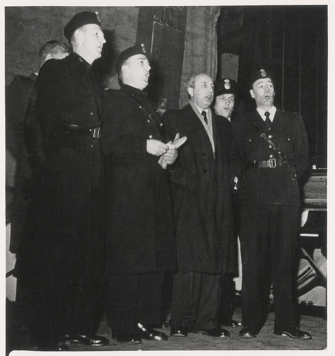 Växjöpolisens sånggrupp framträder i Folkets Hus, 1954.