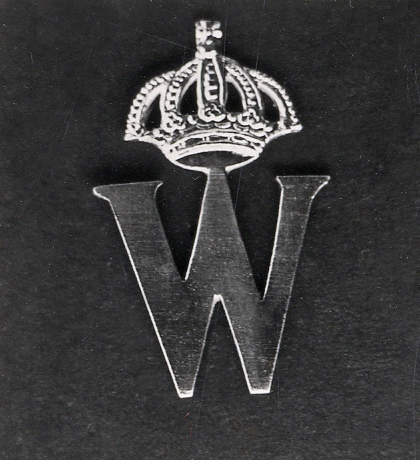 Mössmärke "W" med krona, i mässing, för överkonstapel i Växjö poliskår.
