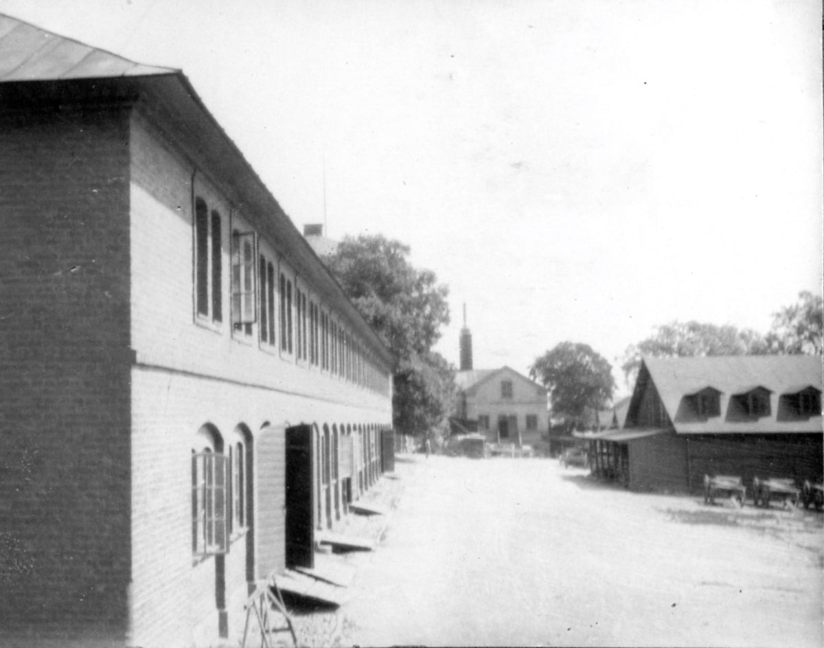 Svea ingenjörkår, Ing 1. Förläggningen vid Jaktvarvet på Kungsholmen. Stall- och förrådsbyggnaden med smedjan i bakgrunden.
