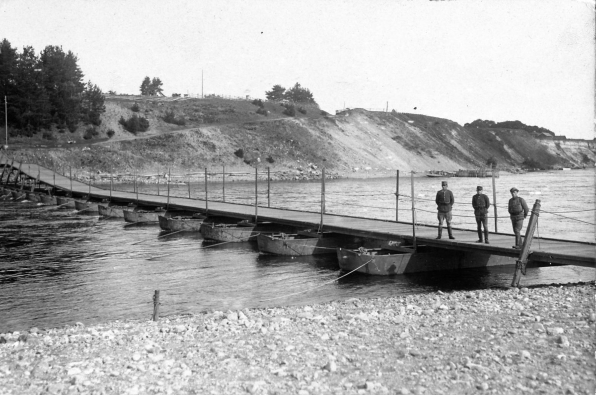 Svea ingenjörkår, Ing 1. Övningsplatsen Laxön. Flytande krigsbro över Dalälven vid Sand.