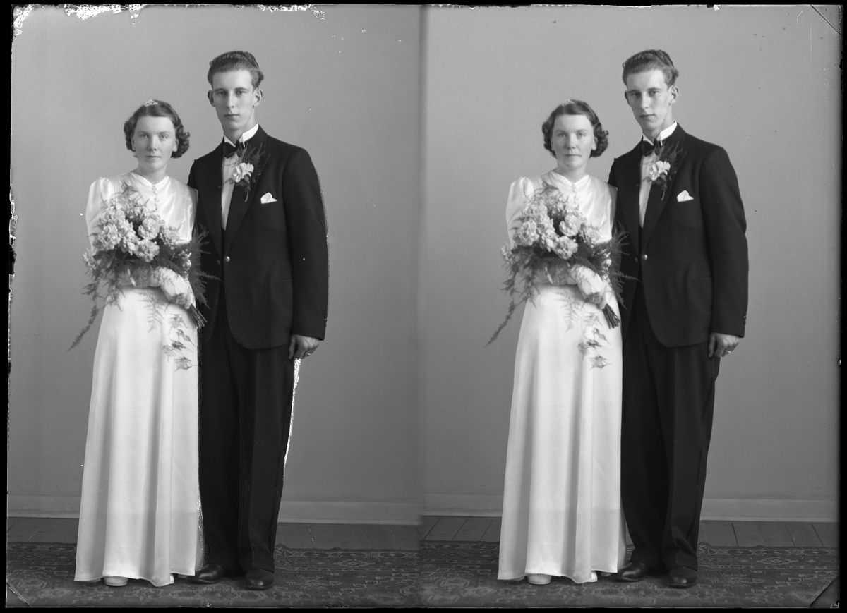 Bröllopsporträtt. Brudpar, Gösta Karlsson, Agnesdal, Hallstahammar.