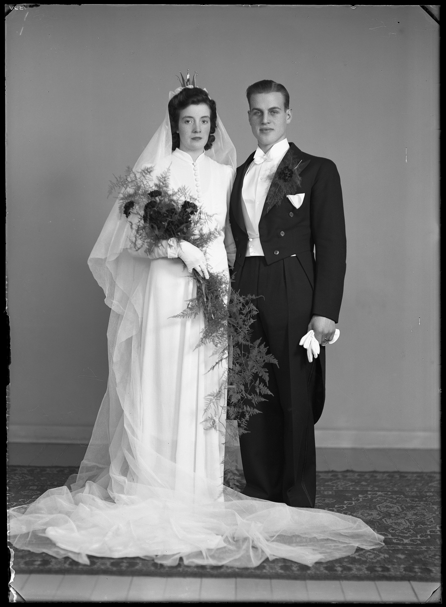Grupporträtt. Brudpar, Arvid Avelin, Herrevadstrand.