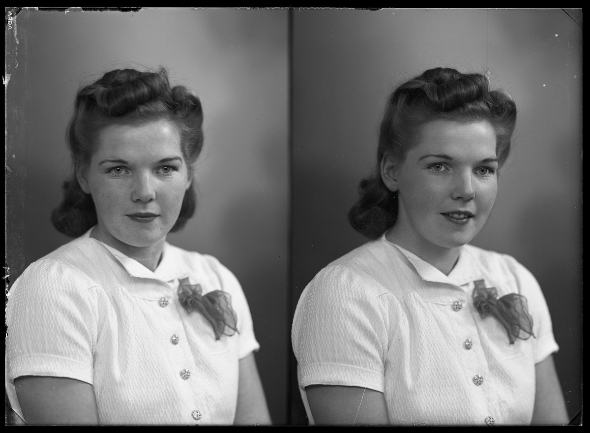 Kvinnoporträtt. Britta Johansson, Box 67, Kolbäck.